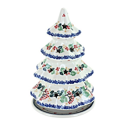 Blue Rose Polish Pottery Holly Large Christmas Tree Luminary Target
